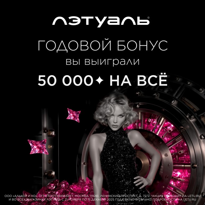 Сенсация! Впервые ЛЭТУАЛЬ идет ва-банк – 50 000 бонусов уже у тебя на балансе! Успей порадовать себя и близких подарками с максимальной выгодой! Если ты еще не участник нашей программы лояльности, начислим до 50 000 welcome-бонусов!